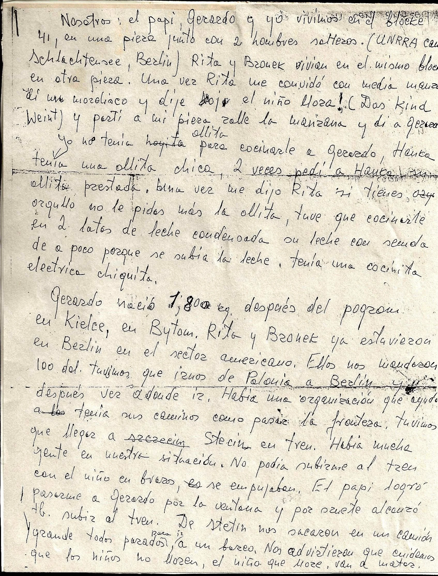 The four of us — Papa, Gerardo, and I — lived in Block 41, in one room together with 2 single men. (UNRRA camp Schlachtensee, Berlin.) Rita and Bronek [My grandpa Ben] lived in the same block, in a different room…